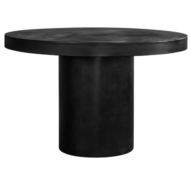 Looking for a bold industrial style? Kathy Kuo Homehas made it for you. Made from fiber reinforced cement, it features a sleek, modern look with a hefty pillar base and a thick, matte, round tabletop.