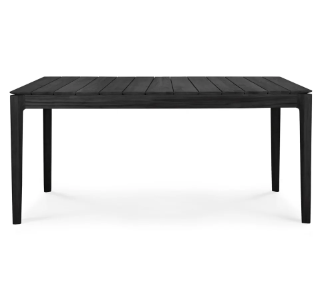 This black Teak dining table by Ethnicraft is perfect for any outdoor space! With its slatted design and solid construction, this timeless centerpiece is crafted from black-tainted solid teak with a grooved tabletop for added style and functionality.