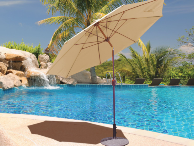 This customizable umbrella by Galtech contains a Dura-Tilt mechanism that enables the umbrella to tilt in either direction! The brand make corrosion resistant and durable steel & aluminum patio bases.
